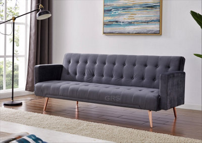 Windsor Luxury Fabric Sofa Bed Grey Velvet with Metal Rose Gold Legs Clic Clac Sofabed Tufted Button Backrest Seat Track Armrests Very well made.