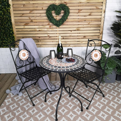 Outdoor Metal Bistro Table and 2 Chairs Set Mosaic Design for Very well made.