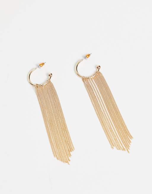 ASOS DESIGN hoop earrings with chain fringe detail in gold tone Very well made.