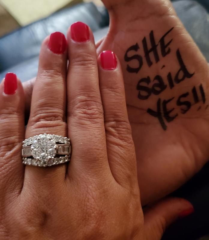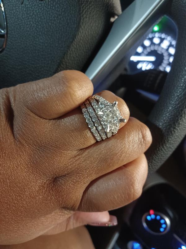 4 CT. T.W. Quad Princess Cut Diamond Frame Three Piece Bridal Set Very well made.