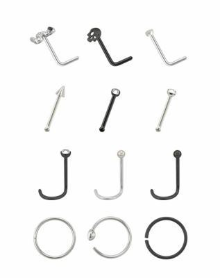 Multi Pack Skull Pin Hoop and L Bend Nose Rings 12 Pack 20 Gauge Very well made.