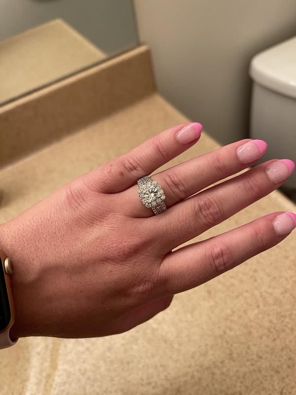 Multi Diamond Engagement Ring 3 ct tw Princess Round 14K White Very well made.