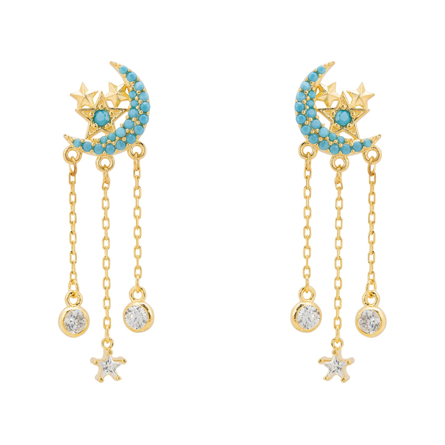 Lunar Moon Chain Drop Earrings Gold Turquoise LATELITA Wolf Very well made.