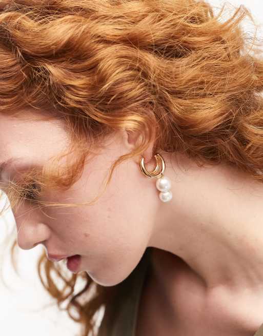 Topshop asymmetric pearl drop double hoop earrings in gold ASOS Very well made.