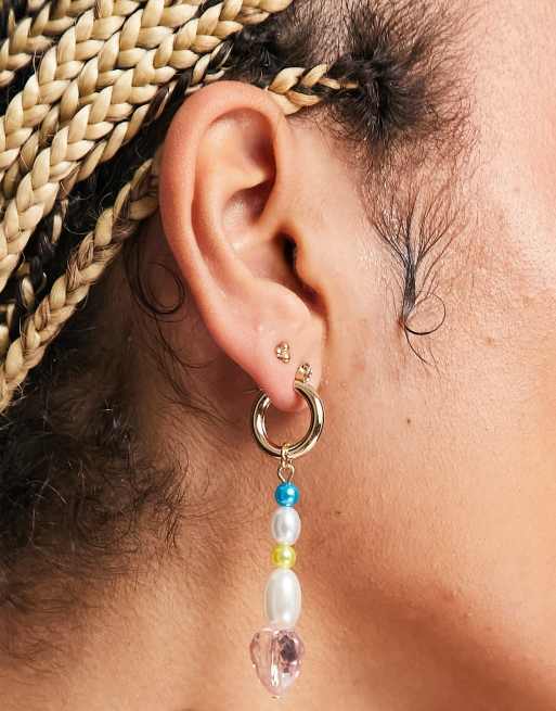 Topshop mixed bead and faux pearl heart drop hoop earrings in Very well made.