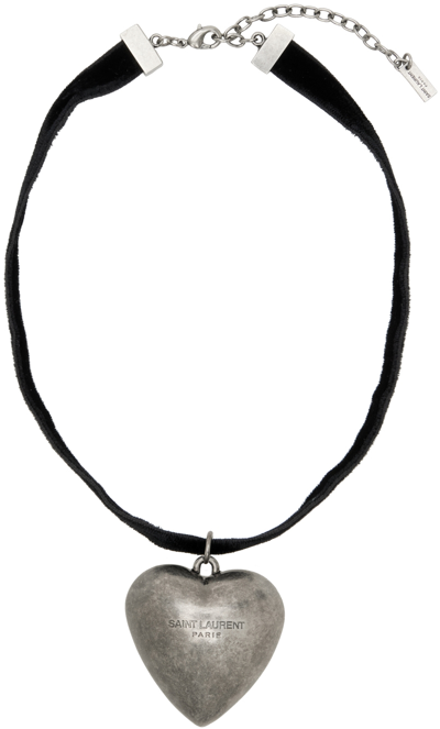 Saint Laurent Oversize Heart Pendant Choker Necklace In Nero Very well made.