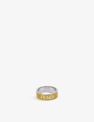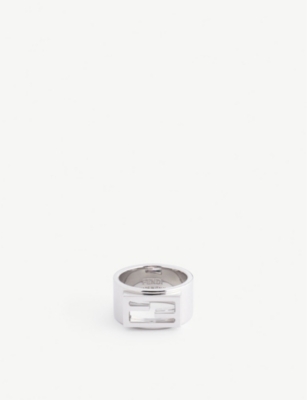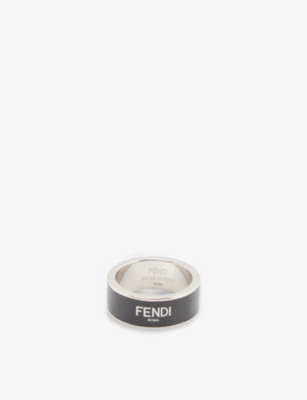 FENDI Brand embellished palladium plated brass ring Selfridges Very well made.