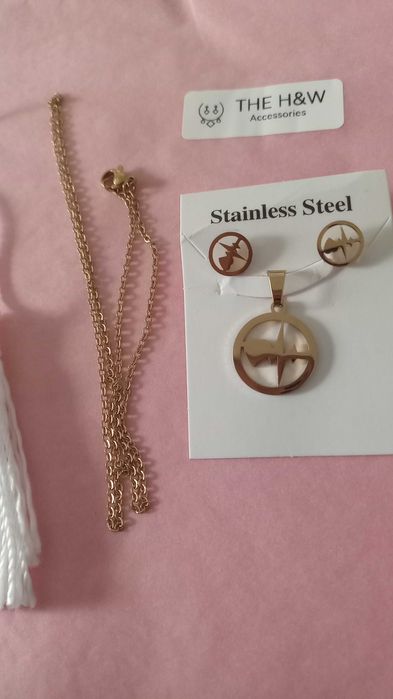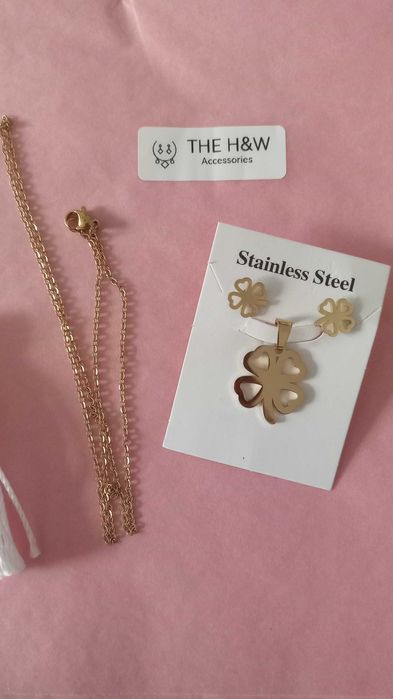 Necklace with earrings gold stainless steel jewelry set Ilfov Very well made.