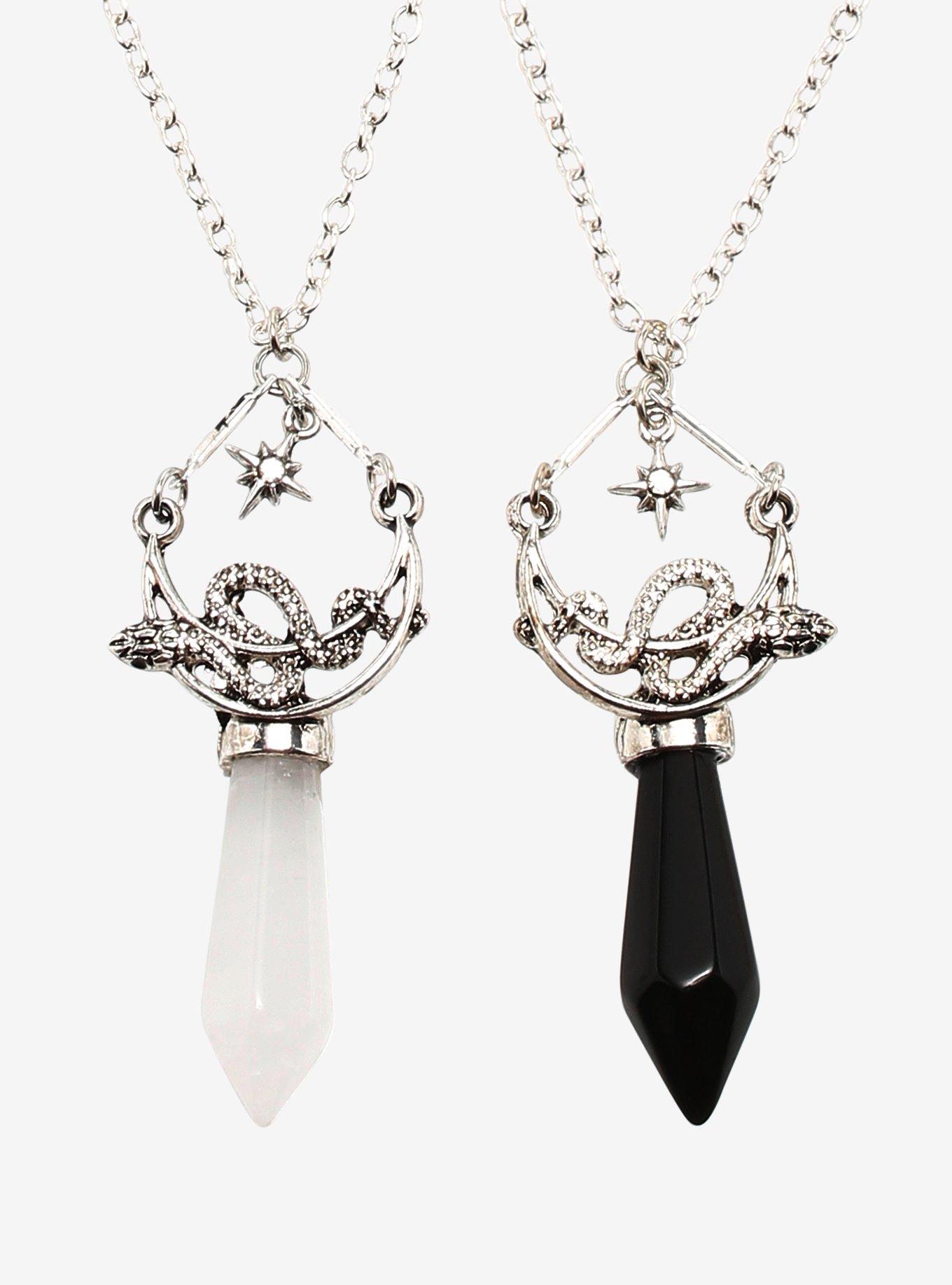 Black White Crystal Snake Moon Best Friend Necklace Set Very well made.
