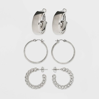 Frozen Chain And Chunky Hoop Earring Set 3pc Wild Fable Silver Very well made.