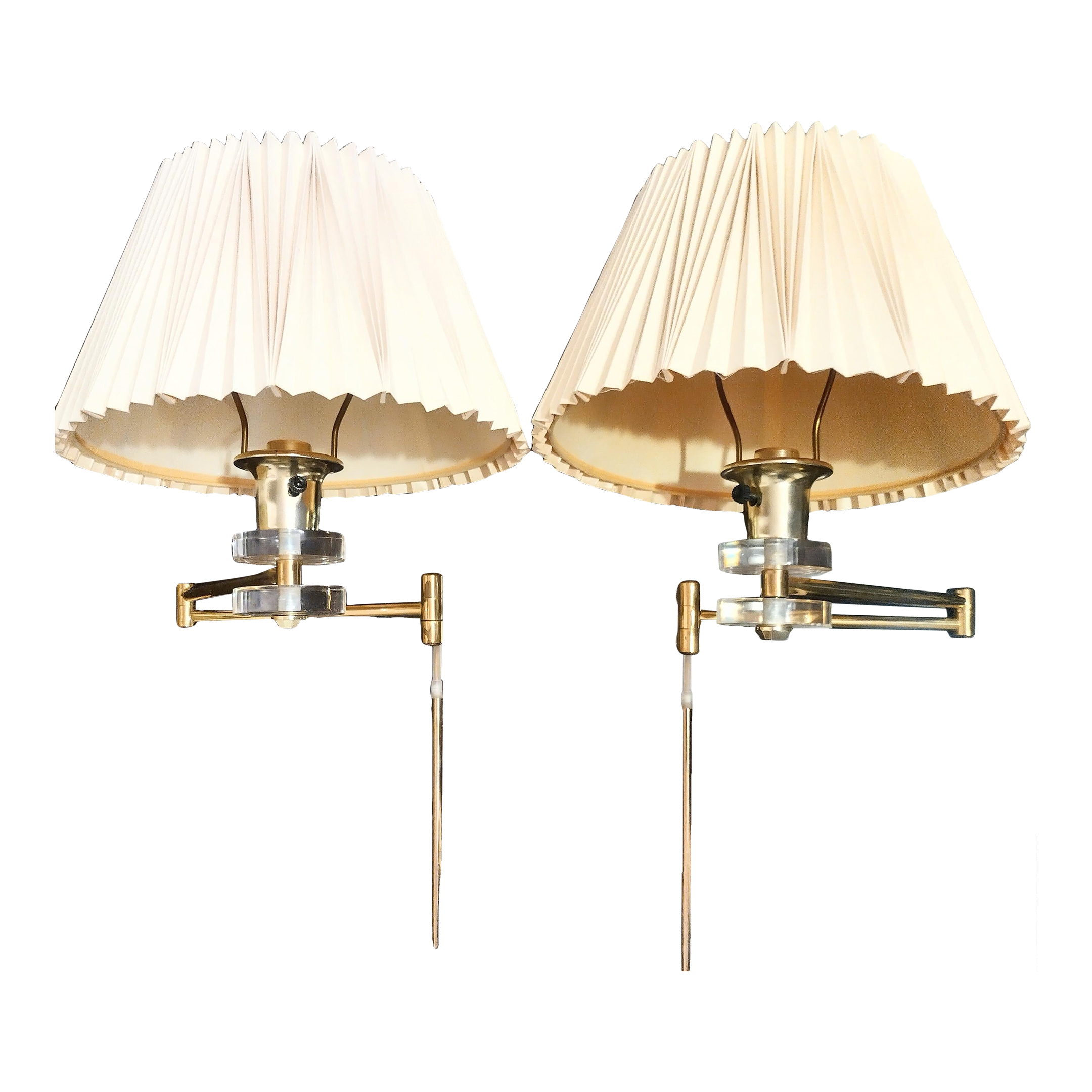 Vintage Lucite Brass Modern Swing Arm Wall Lamp Sconce Fixtures a Very well made.