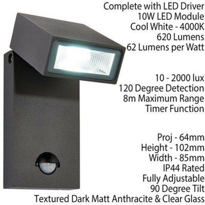 IP44 Outdoor Anthracite Wall Light PIR Motion Sensor Photocell 10W Cool White Very well made.
