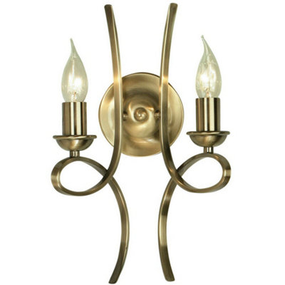 Eaves Luxury Twin Curved Arm Traditional Wall Light Brushed Brass Candelabra Very well made.