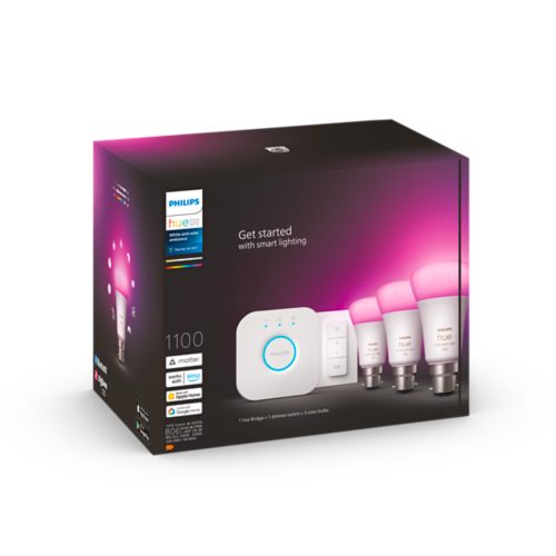 Hue Starter Kit Dimmer Switch 3 pack B22 LED Bulbs White and Very well made.
