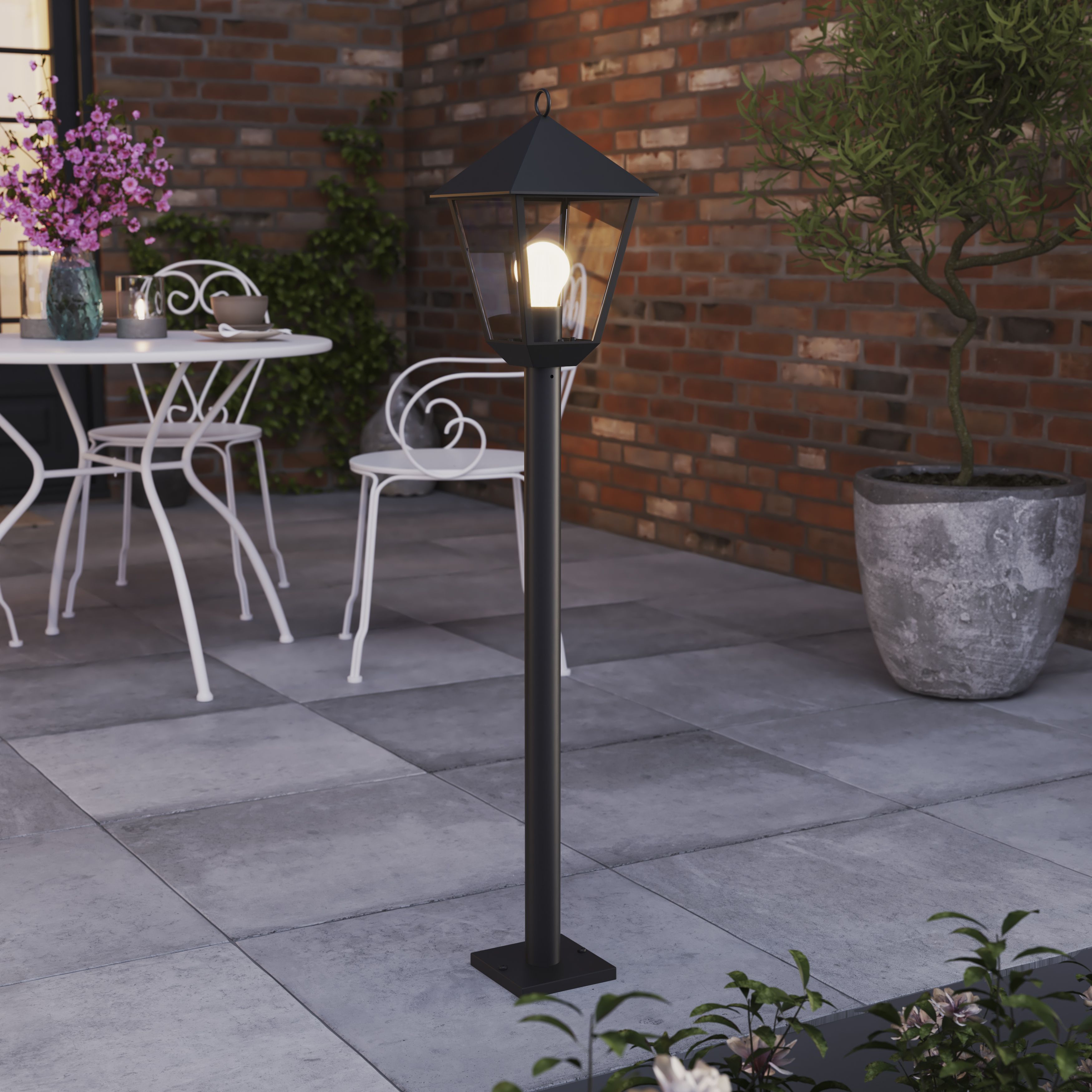 GoodHome Docker Lantern Black Mains powered 1 lamp Outdoor 4 faces Post light H 1100mm Very well made.