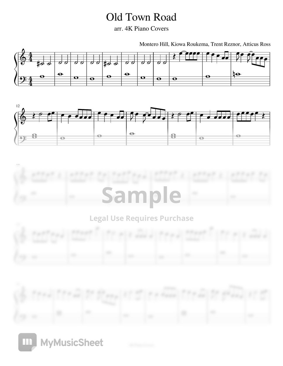 Lil Nas X Old Town Road easy piano by 4k piano covers Very well made.