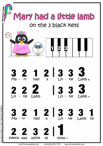 Mary Had a Little Lamb Easy Piano Score Black Keys Teaching Very well made.