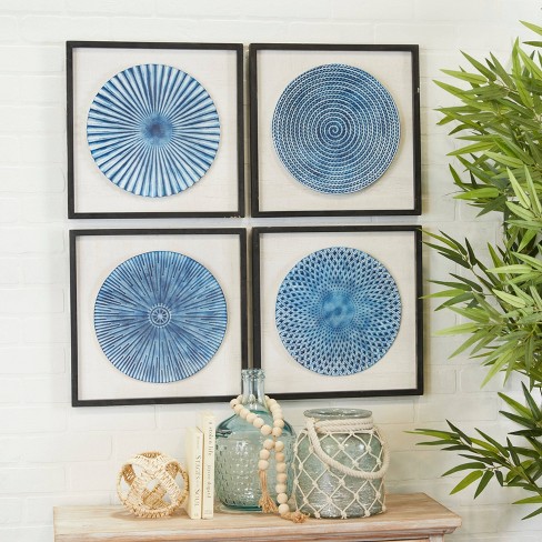 Wood Starburst Radial Plates Framed Wall Art With Black Frame Set Very well made.