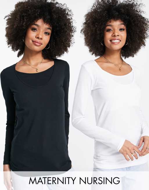Mamalicious Maternity cotton blend long sleeve t shirt 2 pack with nursing function MULTI Very well made.