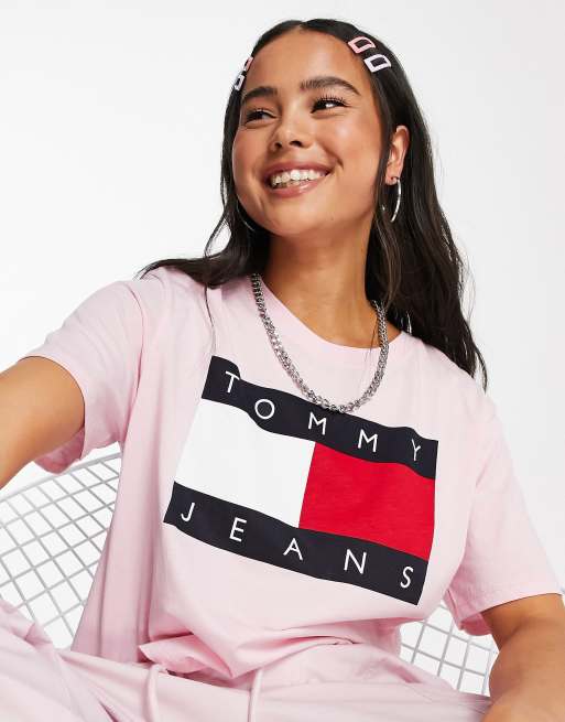 Tommy Jeans flag logo t shirt in pink Very well made.