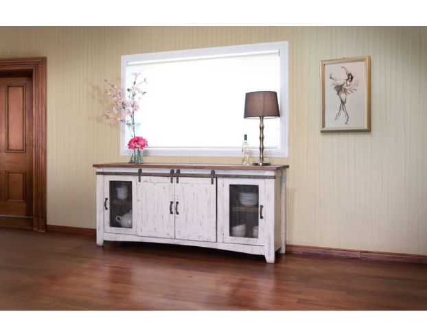 Int l Furniture Pueblo White 80 Inch Barn Door TV Stand Homemakers Very well made.