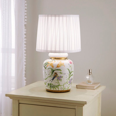 Traditional Ceramic Floral Table Lamp with White Pleated Shade Very well made.